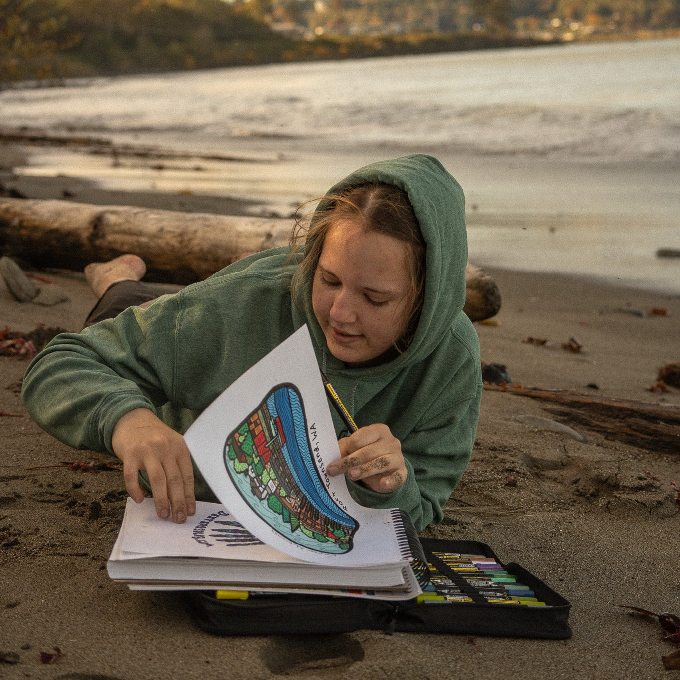 The artist and owner Rainee Signor was born and raised in Washington and is based out of the Olympic Peninsula. Coming from the tiny town of Clallam Bay, it is important for Rainee to not only create the tourist hot spots, but also lesser-known locations loved by locals, of course with a bunch of humor mixed in.