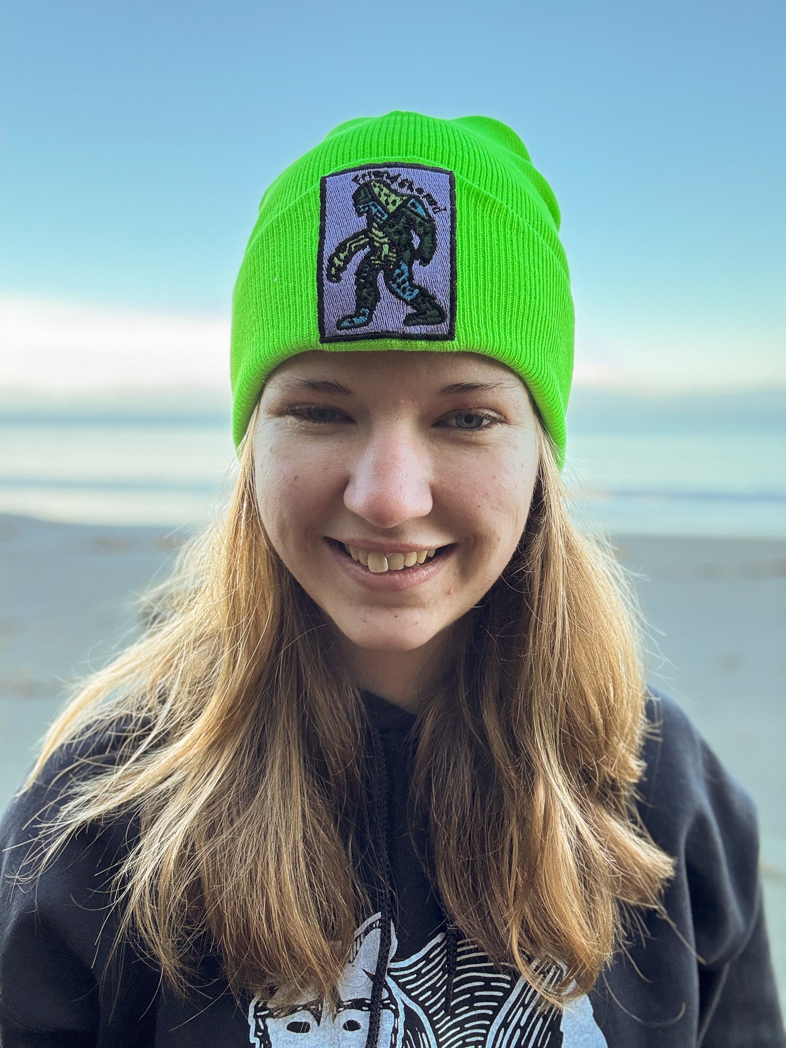 If friend-shaped, why not friend? The perfect sasquatch hat to add to your collection. Original art embroidered into an acrylic Port & Company knit beanie.