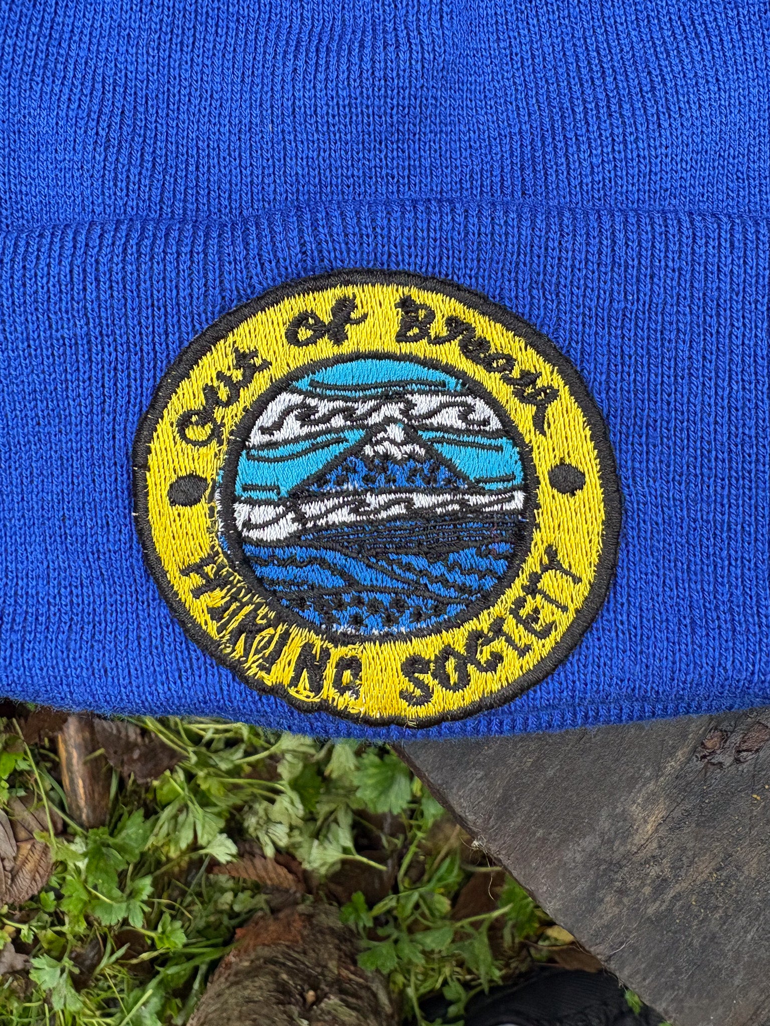 Out of breath but pushing through it! Welcome to the out-of-breath hiking society. Original art emberoidered on Acrylic sportsman beanies.