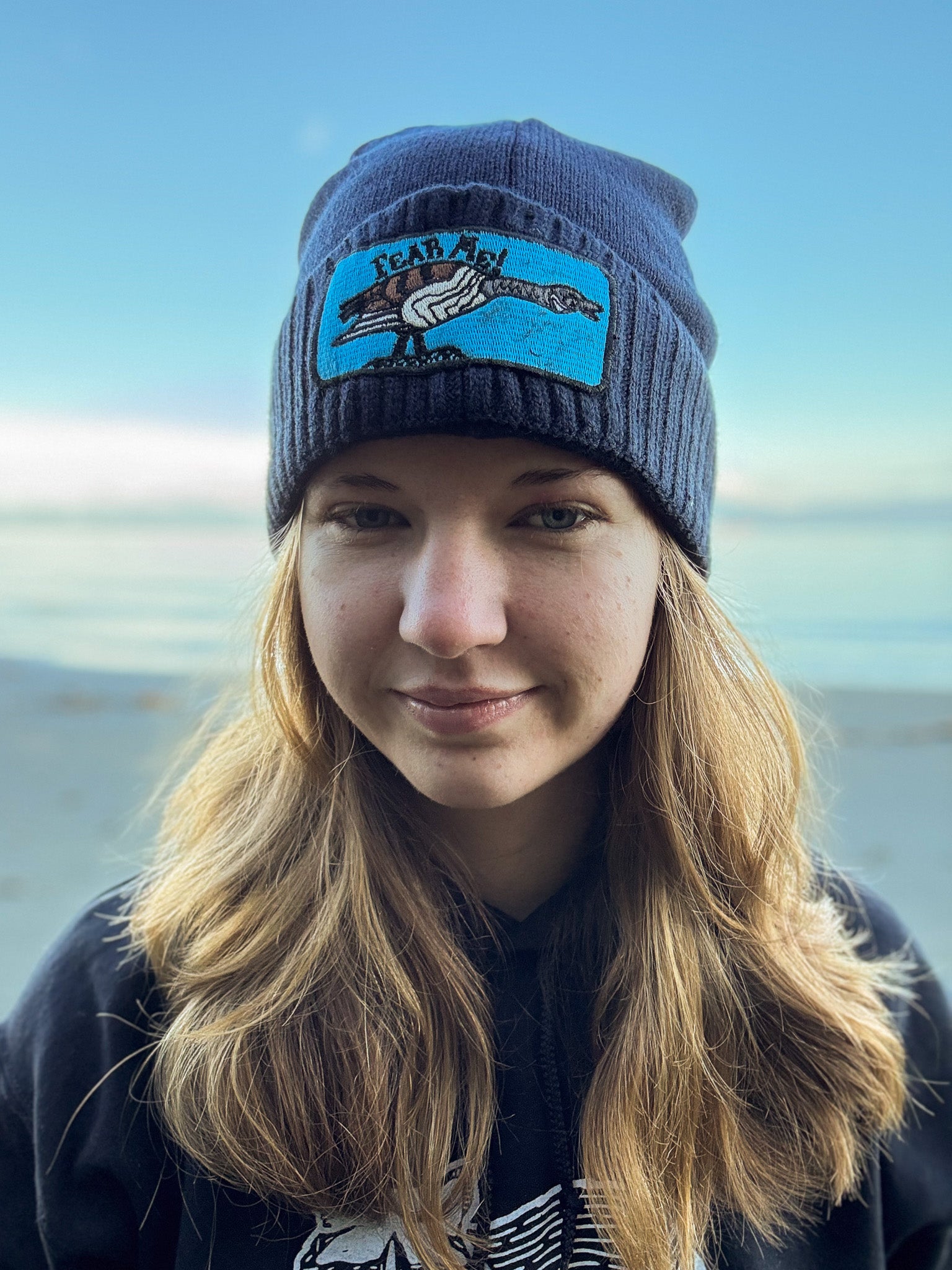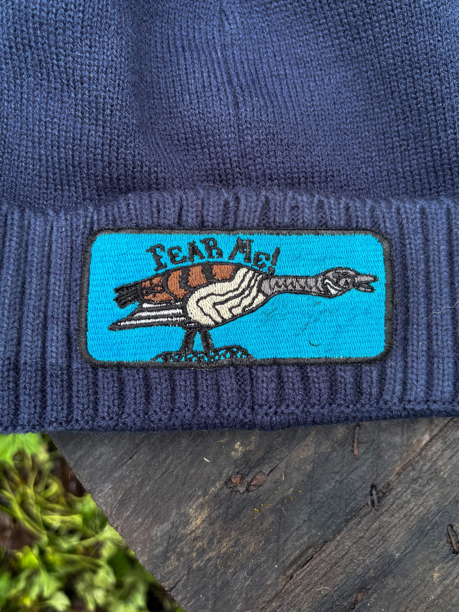 Why are Canadian Geese so scary?? Original art embroidered on a Port & Company acrylic rib cuff beanie.